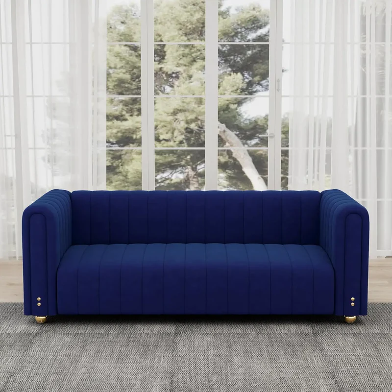 Velvet Sofa with Round Handrails and Gold Metal Legs – Minimalist 3-Seater for Living Room